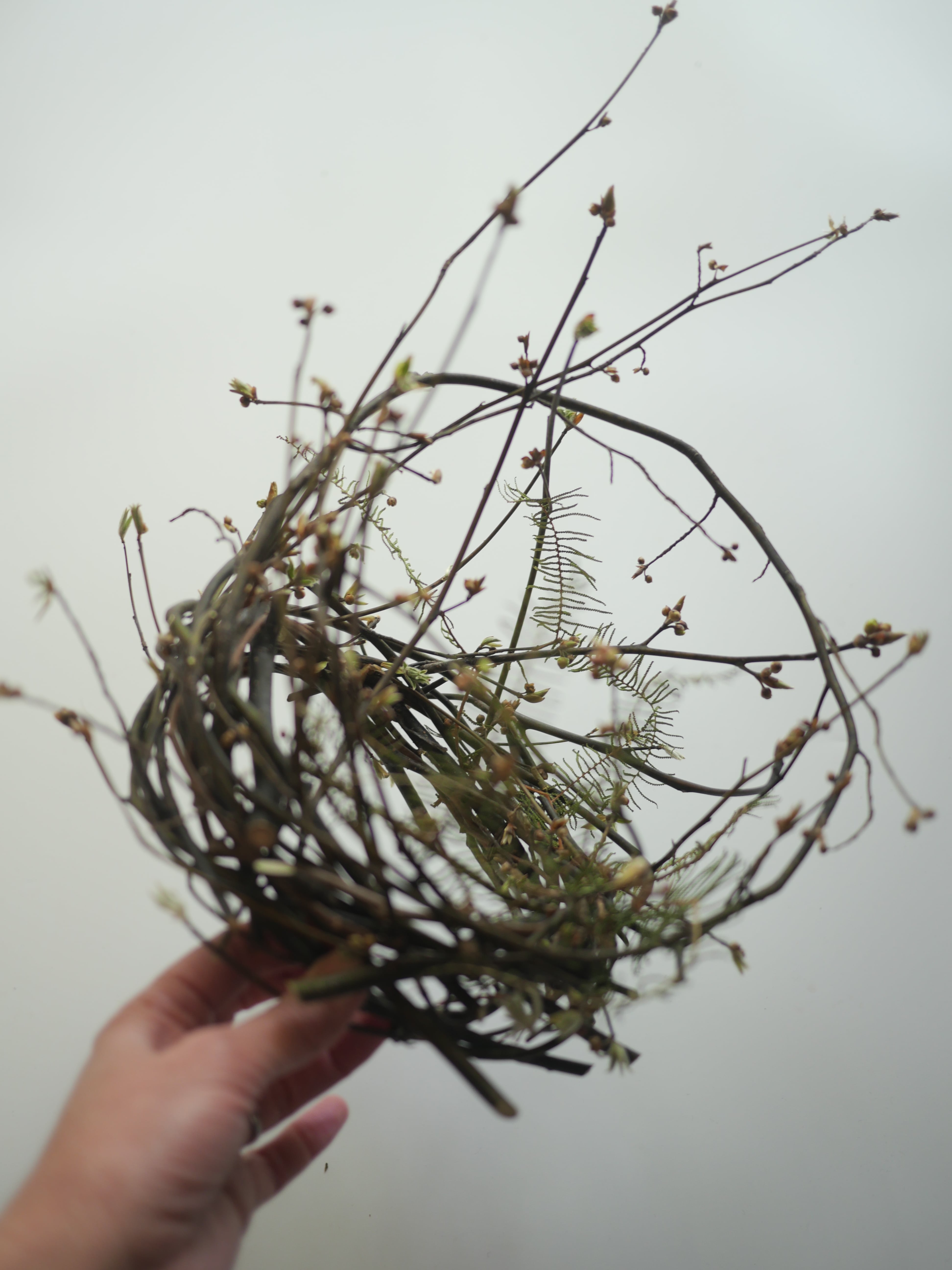 ワイヤーを使わず、植物同士を絡め、巻き付けることで形づくっています。